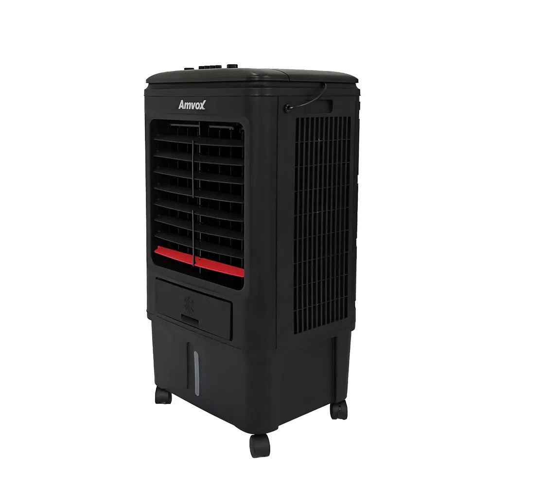 Climatizador Amvox ACL 018. Possui tanque de água de 18 litros, 3 velocidades, swing automático e controle mecânico. Fluxo de ar máximo de 3.000 m³. Intenso fluxo de ar e vasta área climatizada consumindo apenas 1-2 L/H de água. Produto amigável ao meio ambiente. Garantia de 6 meses.